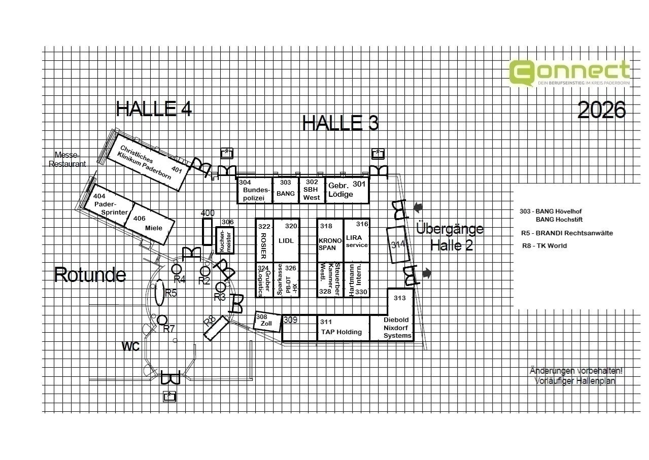 Es stehen fünf Hallen und ein Freigelände im Schützenhof Paderborn zur Verfügung. Die aktuellen Pläne werden hier ab März 2025 veröffentlicht.