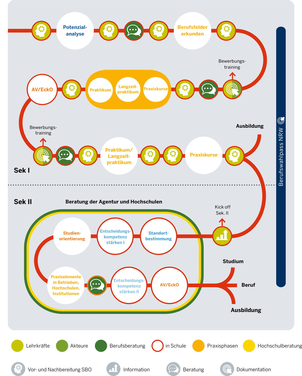 Ab der 8. Klasse gibt es an allen Schulen in NRW eine verpflichtende Berufs- und Studienorientierung. Die Initiative „Kein Abschluss ohne Anschluss“ (KAoA) begleitet Ihr Kind auf seinem Weg Schritt für Schritt.