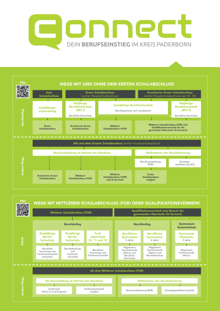 🡥Hier finden Sie die Verantwortungskette im Kreis Paderborn. Diese regelt den Übergangsprozess und die Rolle der beteiligten Akteure von der Feststellung unversorgter Jugendlicher bis zu deren Einmündung in einen Anschluss.